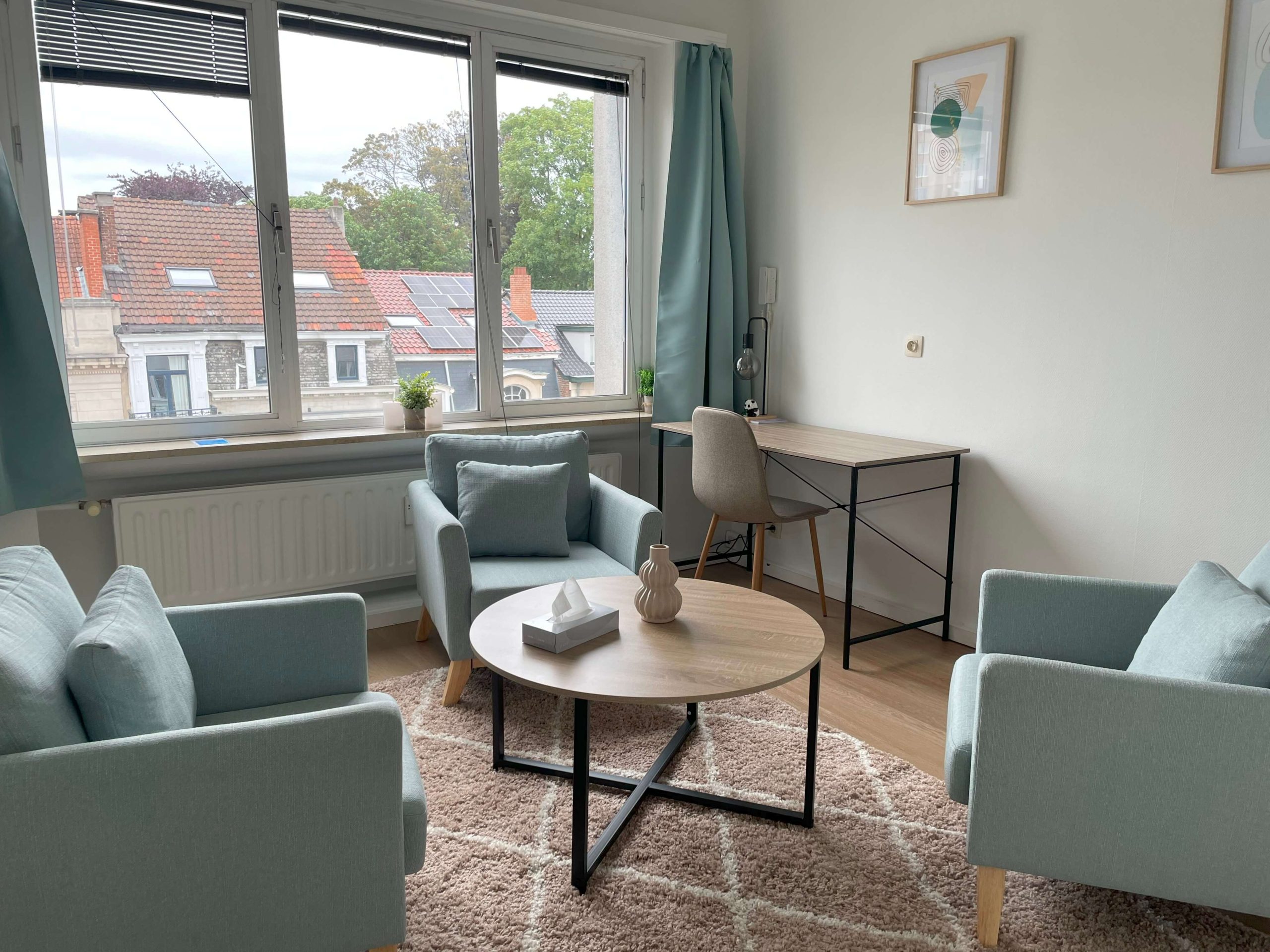 Office 4 has been designed to provide a professional, aesthetically pleasing environment with a welcoming, modern feel. Equipped with comfortable armchairs that can seat up to three people, the space is ideal for both individual consultations and helping couples achieve emotional well-being. With its soft, soothing decor, the space promotes a relaxing atmosphere.